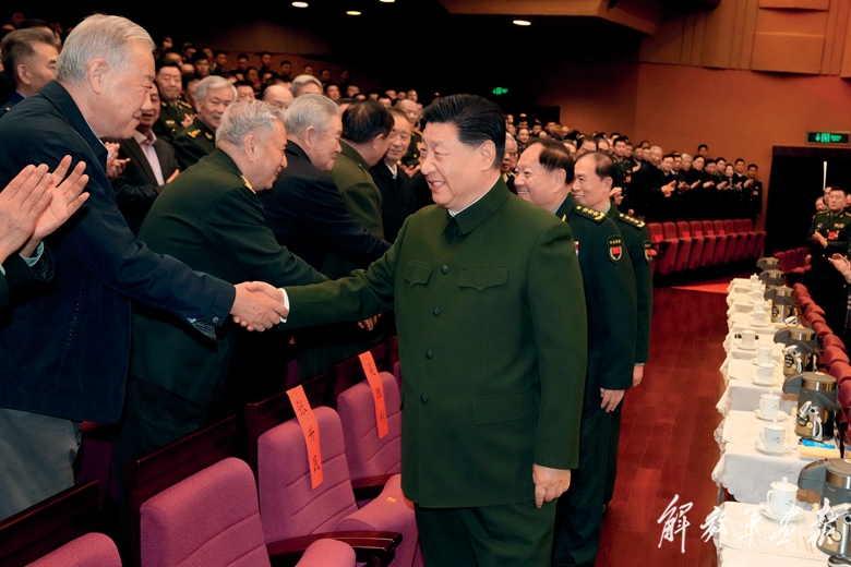 下午4時(shí)許,習(xí)近平來(lái)到老同志中間,全場(chǎng)響起熱烈掌聲。習(xí)近平同大家親切握手、互致問(wèn)候,關(guān)切詢問(wèn)他們的身體和生活情況,共同回顧過(guò)去一年黨、國(guó)家和軍隊(duì)事業(yè)走過(guò)的不平凡歷程、取得的重大成就。老同志們一致表示,要更加緊密地團(tuán)結(jié)在以習(xí)近平同志為核心的黨中央周圍,堅(jiān)持以習(xí)近平新時(shí)代中國(guó)特色社會(huì)主義思想為指導(dǎo),深入貫徹習(xí)近平強(qiáng)軍思想,深刻領(lǐng)悟“兩個(gè)確立”的決定性意義,堅(jiān)決做到“兩個(gè)維護(hù)”,貫徹軍委主席負(fù)責(zé)制,弘揚(yáng)光榮傳統(tǒng)、永葆政治本色,堅(jiān)定信心、團(tuán)結(jié)奮斗,繼續(xù)為打好實(shí)現(xiàn)建軍一百年奮斗目標(biāo)攻堅(jiān)戰(zhàn),為以中國(guó)式現(xiàn)代化全面推進(jìn)強(qiáng)國(guó)建設(shè)、民族復(fù)興偉業(yè)作出積極貢獻(xiàn)。