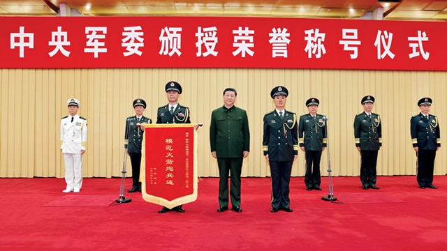 中央軍委舉行榮譽稱號頒授儀式 習近平向獲得榮譽稱號的單位頒授獎旗