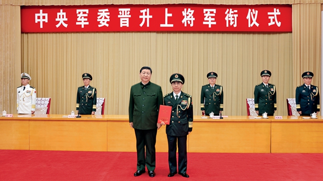 中央軍委舉行晉升上將軍銜儀式 習近平頒發(fā)命令狀并向晉銜的軍官表示祝賀