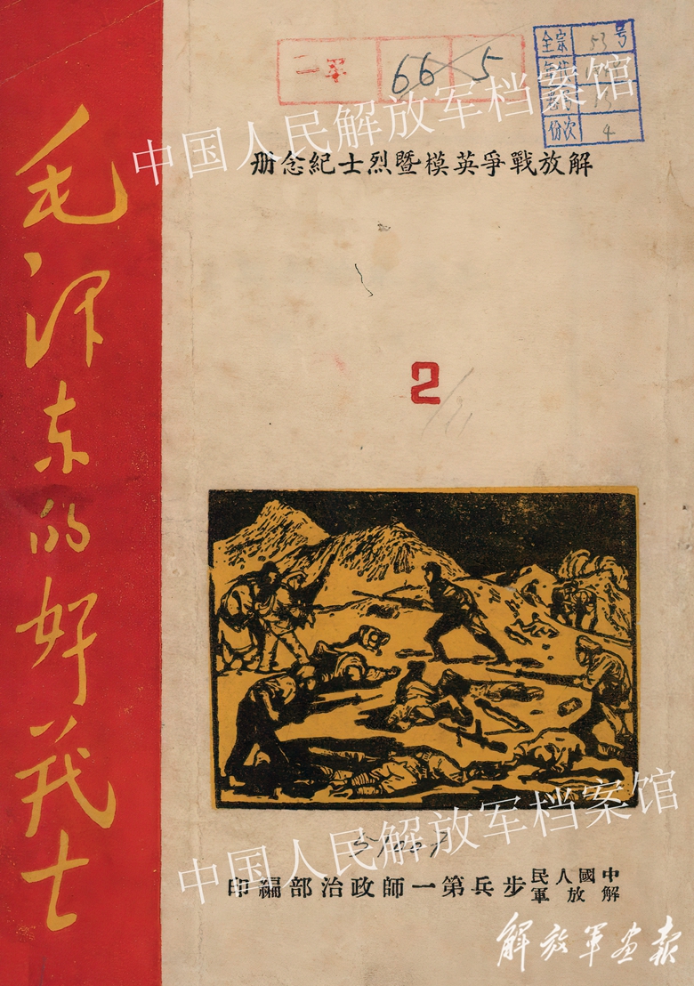1949年《解放戰(zhàn)爭(zhēng)英模暨烈士紀(jì)念冊(cè)》第2冊(cè)封面。(中國(guó)人民解放軍檔案館提供)