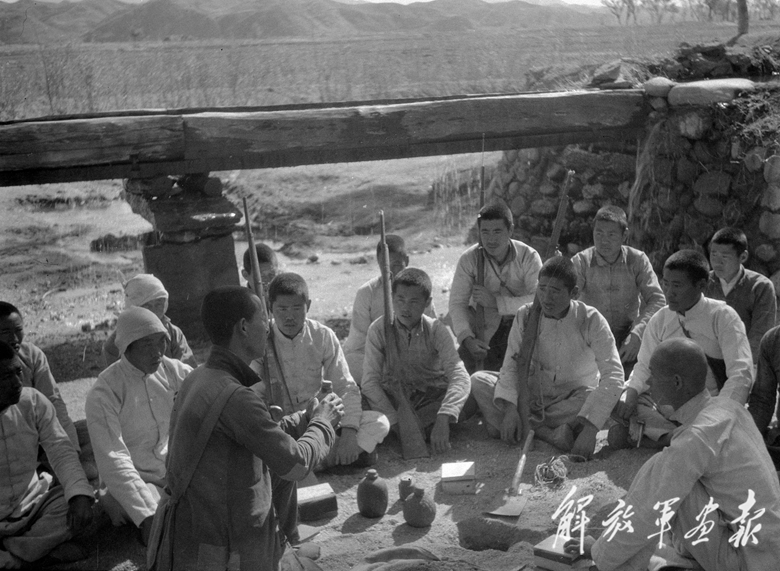 民兵們在戰(zhàn)斗間隙交流埋設(shè)地雷的經(jīng)驗(yàn)。(本刊資料室提供)