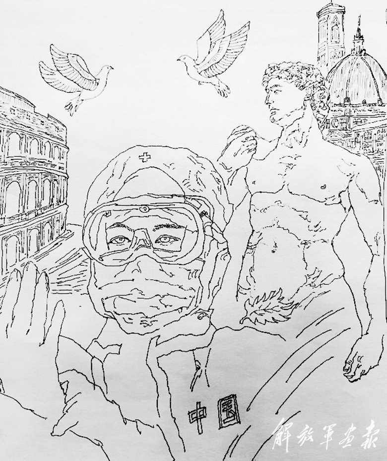 2020年1月23日,武漢因新冠肺炎疫情嚴重而封城。馬國旗和家人在武漢家中進行居家隔離,通過電視和網(wǎng)絡(luò),他關(guān)注著疫情防控工作的進展,時刻被抗擊疫情斗爭中涌現(xiàn)的英雄事跡感動著。出于一名老兵和畫家的自覺,他決定將眼中所見、心中所感畫出來,以表達自己內(nèi)心的崇敬。