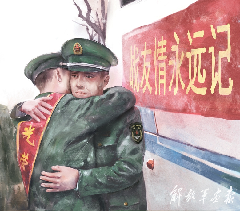 幫助戰(zhàn)友卸下軍銜(數(shù)碼彩繪) 作者/崔 琳