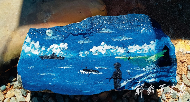 潛入深藍(lán)(石頭畫) 作者/曹東南