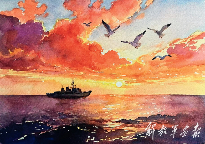 編隊(duì)航行(水彩畫) 作者/王爽爽