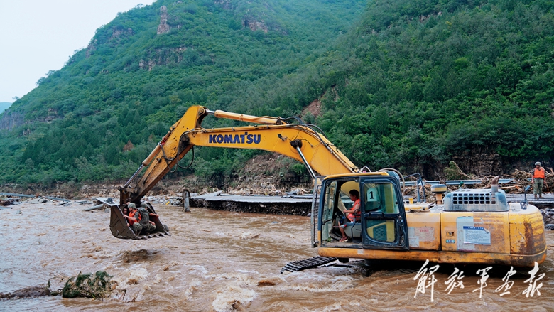 8月3日,陸軍第82集團(tuán)軍某工兵旅趕赴北京市房山區(qū)受災(zāi)地域架設(shè)重型支援橋,保證當(dāng)?shù)鼐用裾Mㄐ小#〝z影/萬端武)