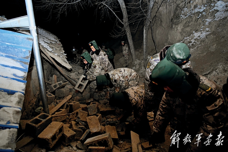 12月19日,陸軍第76集團(tuán)軍某旅官兵在甘肅臨夏州積石山縣大河家鎮(zhèn)陳家村開展救援。(攝影/徐 果)