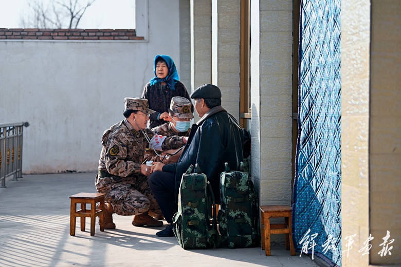 12月19日,武警青??傟?duì)海東支隊(duì)衛(wèi)生隊(duì)官兵在青海省海東市民和回族土族自治縣中川鄉(xiāng)草灘村開展醫(yī)療保障。(攝影/新華社記者 張 龍)