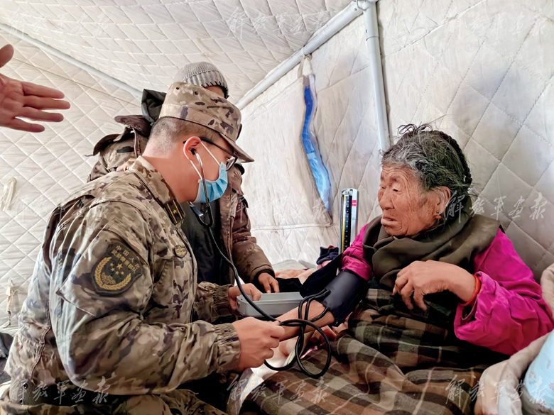 1月8日,西藏軍區(qū)總醫(yī)院醫(yī)療隊深入震區(qū)巡診送藥。(攝影/劉煜欽)