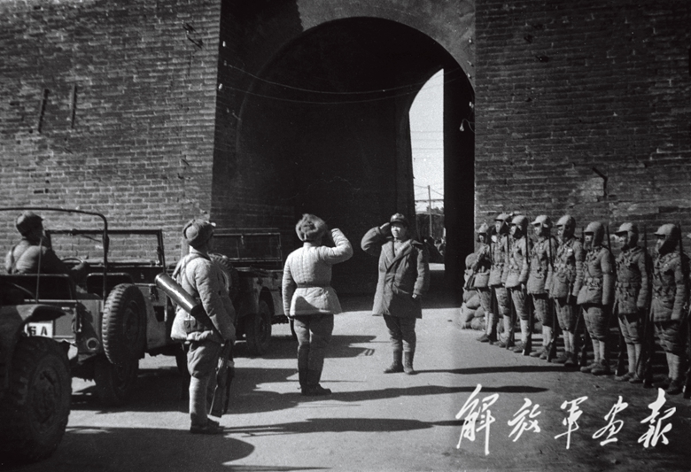 “1949年2月3日,人民解放軍舉行了規(guī)模盛大的入城式,我拍下了許多北平市民歡迎解放軍的動人場景。上午10時,人民解放軍舉行了莊嚴(yán)隆重的入城式,通過永定門進(jìn)入了珠市口——前門大街。兩旁的男女老少手持五顏六色的小旗,人人笑逐顏開,個個揚(yáng)眉吐氣,商店敞開大門,到處貼著歡迎人民解放軍的標(biāo)語。入城部隊(duì)行進(jìn)到正陽門和北平前門火車站一帶,而后從那里直接轉(zhuǎn)向東交民巷使館區(qū)。這里,在舊中國是帝國主義的天地,是中國國土上的‘國中之國’。中國的軍警不得進(jìn)入。而今,北平解放了,中國人民任人宰割欺凌的時代,和舊社會一樣,一去不復(fù)返了。中國人民解放軍從這里昂首闊步通過,宣告了帝國主義主宰中國的美夢徹底破滅?!?/p>