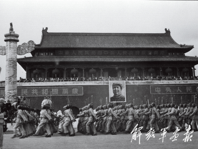 升旗之后,毛澤東宣讀《中華人民共和國中央人民政府公告》,緊接著舉行了規(guī)模浩大的閱兵式和群眾游行。慶?;顒拥酵砩?點(diǎn)多鐘結(jié)束,但歡樂的人群依然抑制不住內(nèi)心的興奮。