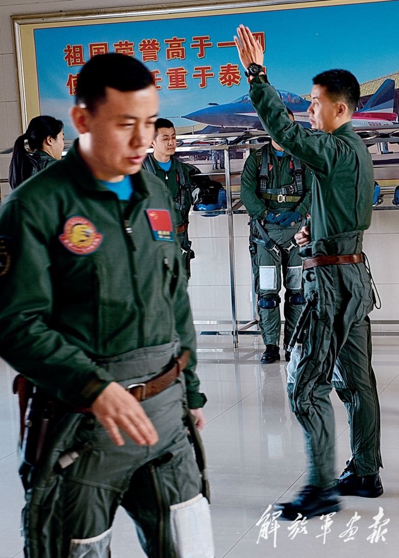 進場后,航醫(yī)陳月秋始終陪在飛行員身邊。指揮員下達簡令后,他開始為飛行員查脈搏、量血壓、測體溫,詢問他們的身體感受,確保每名飛行員都能以最好的狀態(tài)翱翔藍天。