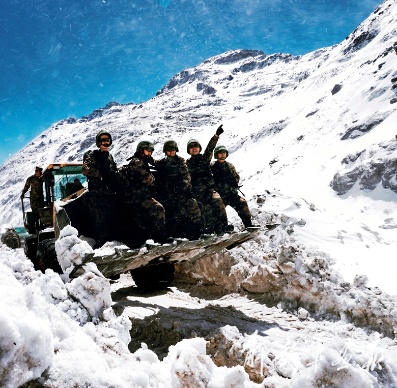 推土機(jī)鏟雪開路不成功,大家手腳并用向山上攀爬又遇風(fēng)雪阻路……這一天,記者一行未能登上卓拉哨所,但卻深刻體會到通往卓拉哨所的道路有多艱險,深刻感受到邊關(guān)軍人的堅忍與豪邁。