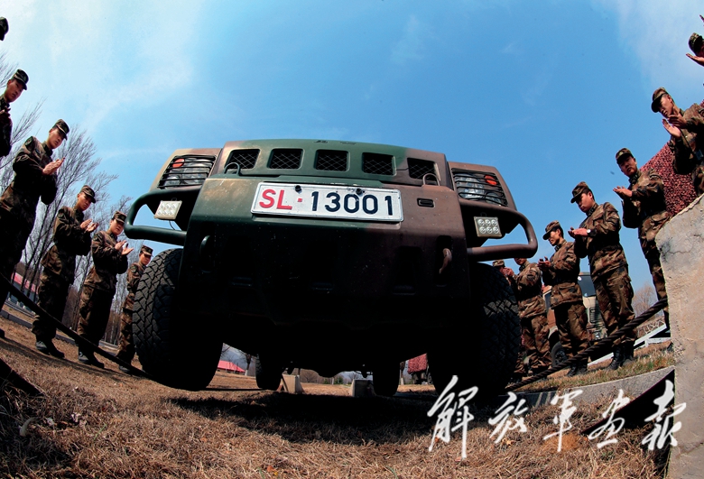 訓練場上,只見老卞駕駛一輛越野車先爬上一個斜坡,將前后車輪相繼精準落在兩條晃動的鋼纜上,然后平穩(wěn)地行駛了兩個車長的距離。事后,老卞告訴記者:“要鍛造戰(zhàn)場上打不爛、炸不斷的鋼鐵運輸線,平時不練些‘絕活’還真不行!”
