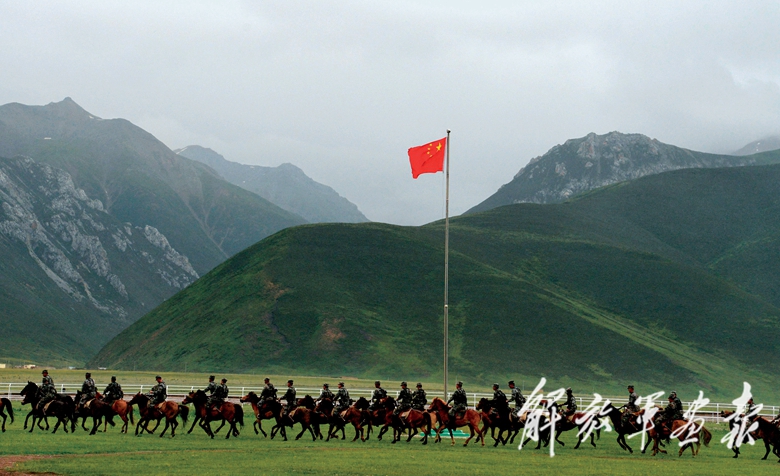 盛夏,蔥翠的巴塘草原上,西部戰(zhàn)區(qū)陸軍某旅玉樹獨立騎兵連官兵騎馬飛馳而過。