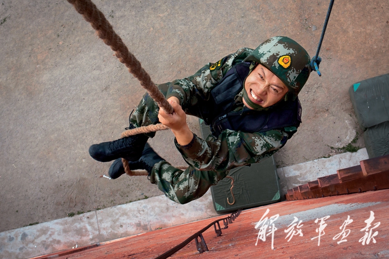 “向戰(zhàn)而行,向死而生,我看見你怎樣用血性點燃豪情……”迎著朝陽,李玉峰和戰(zhàn)友們一起高唱《向戰(zhàn)而行》,奔向訓練場,開始了嶄新的一天,歌聲久久回蕩在曠野間……