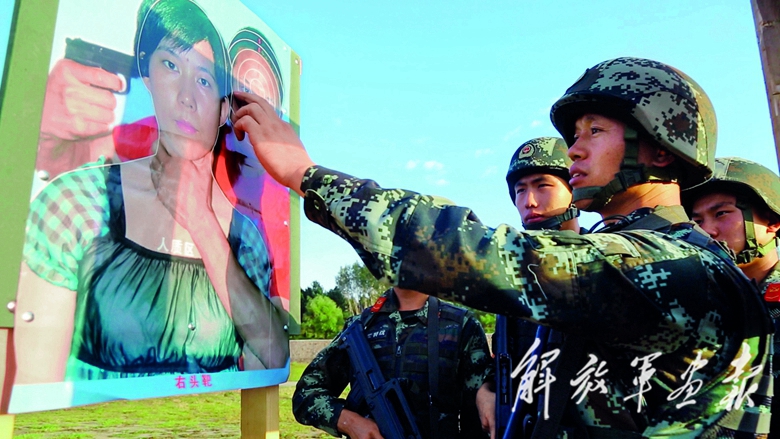 當時,一名暴徒佯裝倒地。當戰(zhàn)斗小組官兵搜索接近時,暴徒手持燃燒瓶突然躍起,妄圖點燃液化氣罐。